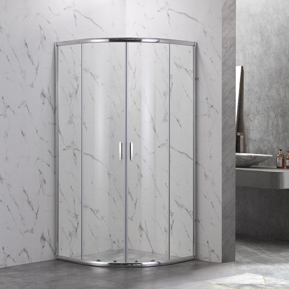 VECONI Душевой угол полукруглый, двери раздвижные Rovigo RV-202B, 900x900x1900, черный, стекло прозрачное