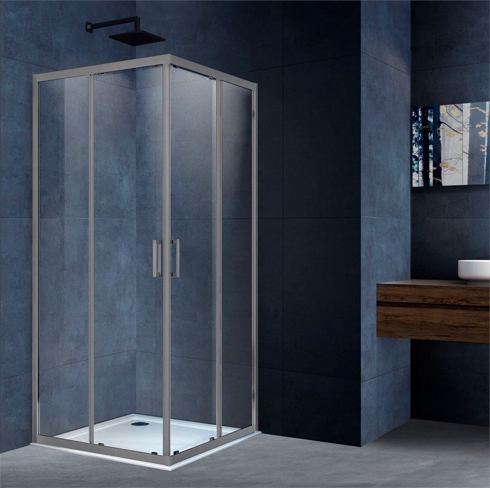 VINCEA Alpha Душевой уголок квадратный размер 100x100 см, двери раздвижные, профиль - вороненая сталь / стекло - прозрачное