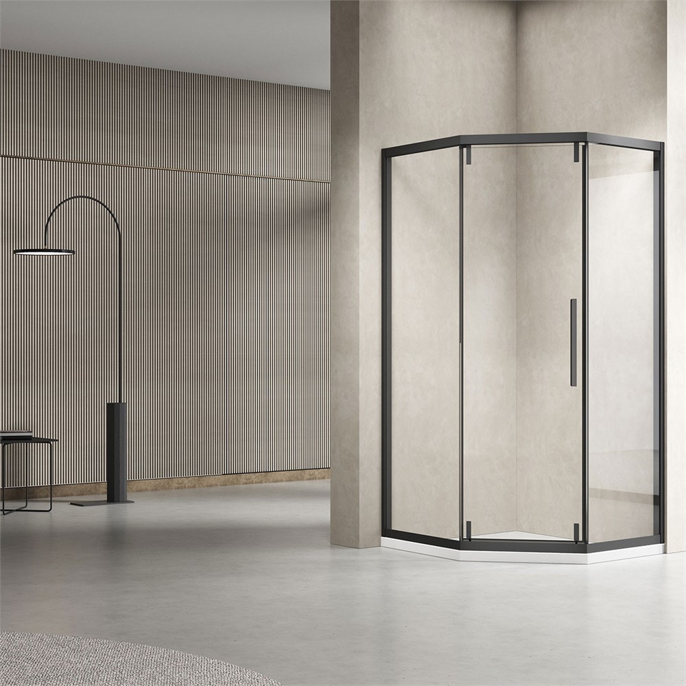 VINCEA Show Душевой уголок пятиугольный размер 100x100 см, двери раздвижные, профиль - черный / стекло - прозрачное