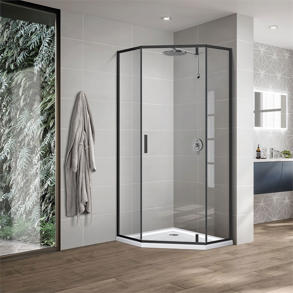 VINCEA Slim-U Душевой уголок пятиугольный размер 90x90 см, двери распашные, профиль - черный / стекло - прозрачное